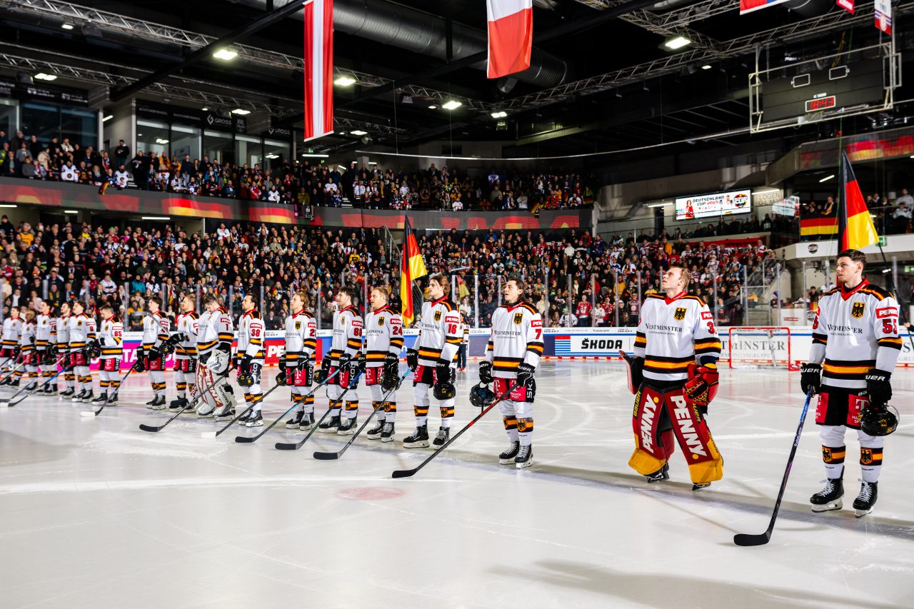 Während die Frauen jubeln, schaut es für die Mannschaft der Herren am Abend nicht so rosig aus. Gegen Österreich unterlegen sie mit einem ernüchternden 2:5. Schon der Start misslingt: Nach fünf Sekunden ein Powerplay für die Gegner und unverzüglich trifft Österreichs Best Player of the Match Vinzenz Rohrer den Kasten. Im zweiten Drittel, ein Lichtblick für Deutschland, Torjubel durch Kapitän Moritz Müller. Doch die Antwort der Österreicher lässt nicht lange auf sich warten, 1:2 and counting. Danach findet Deutschland nicht mehr zurück ins Spiel. Nur durch Paraden von Goalie Dustin Strahlmeier wird Schlimmeres verhindert.