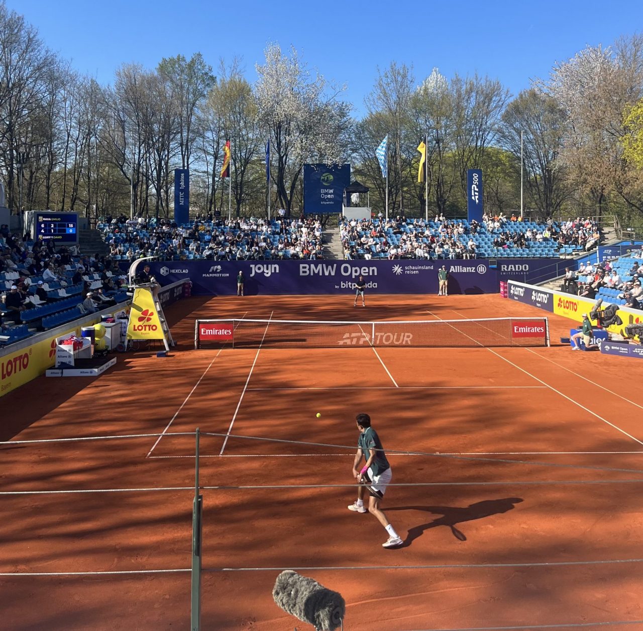 Um 11:30 Uhr war es dann so weit und die ersten Spieler betraten den Center-Court: der mit einer Wildcard ausgestattete Marko Topo aus Deutschland und Ugo Blanchet aus Frankreich. Auf dem Papier war Blanchet als Nummer 160 der Welt der Favorit, denn Topo lag fast 100 Plätze hinter ihm. Doch der 22-jährige Topo spielte beflügelt von der Unterstützung der Münchner Fans groß auf. Vor allem seine Vorhand, mit der er immer wieder Druck machte, und sein Aufschlag verhalfen ihm zum 6:3, 6:4-Matchgewinn.